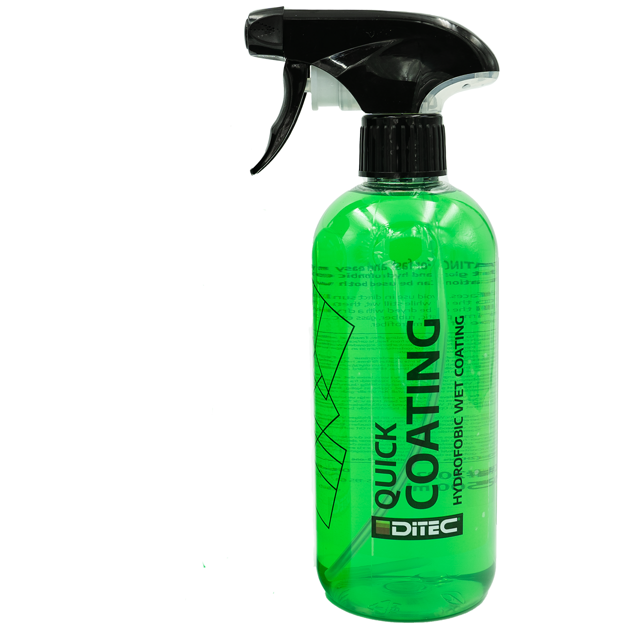 Ditec Quick Coating Raskt og enkelt vedlikehold for keramiske belegg. Ultrarask påføring, gir hydrofobe egenskaper og tilfører en fantastisk glans. Legger raskt til beskyttelse. Høyglanseffekt, øker lakkens glans. Skaper hydrofobe egenskaper, hjelper keramiske belegg å holde seg aktive. Perfekt vedlikeholdsprodukt for keramisk belagte biler Spray på, skyll av for en superrask påføring. Kan også brukes tørt som en rask detalj. Hvordan bruker du produktet Må ikke brukes på varme overflater. Unngå bruk i direkte sollys. Vask bilen grundig. Spray produktet på bilen mens den fortsatt er våt, og skyll deretter bilen med rent vann. For å unngå vannflekker skal bilen tørkes med tørkeklut eller syntetisk skinn. Produktet kan brukes på felger, plast, gummi, glass etc. Ved bruk tørr spray på produktet, spre og tørk av med mikrofiber