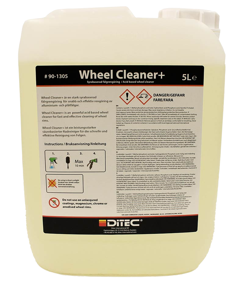 Sterk syrebasert felgvask som gir rask og effektiv fjerning av bremsestøv, olje og trafikkfilm på dekk og felg.