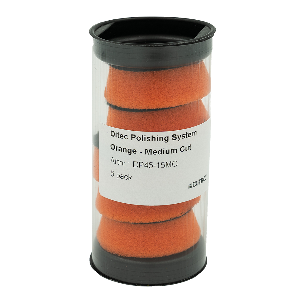 NY! Ditec skumpoleringsputer 2.0 Våre nye skumputer av førsteklasses kvalitet, testet og produsert for bruk med vårt utvalg av høyytelses poleringsprodukter. Den oransje fargede puten er laget for middels kutting/høyglanseffekt. Egnet for både etterbehandling og moderat kuttkorreksjon av alle moderne malingstyper og gelcoat. Ofte brukbart for ett-trinns korreksjon, dette med store tidsbesparelser. Også veldig bra for etterarbeid etter tyngre korrigeringer. For bruk med (DA) oscillerende maskiner. Konstruksjonen og kvaliteten på skum som er valgt for produksjon, gir brukeren en pute som har lang levetid, god varmeavledning og bearbeidbarhet av poleringsproduktet. Anbefales for bruk i kombinasjon med Ditec Medium Cut polish. Kan også brukes i andre kombinasjoner, for eksempel med Heavy eller Fine Cut avhengig av situasjon. Vi anbefaler på det sterkeste strategien med å bruke et testpanel for hvert trinn i din poleringsprosess. Rengjøres enkelt med trykkluft eller børste under poleringsprosessen, kan skylles etterpå eller rengjøres i en putevasker. Hold puten ren under prosessen for optimal finish.