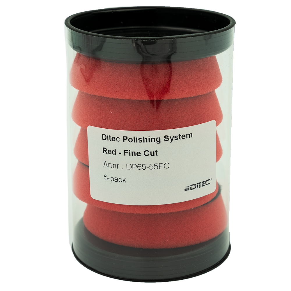 NEW! Ditec foam polishing pads 2.0 Our new, premium quality foam pads, tested and manufactured for use with our range of high performance polishing products. The red coloured pad is made for low cutting/ high gloss effect. Suitable for finishing and fine cut correction of all modern paint types. For use with (DA) oscillating machines. The construction and the quality of foam selected for manufacturing provides the user with a pad that has longlife, good heat dissipation and workability of polishing product. Recommended for use in combination with Ditec Fine Cut polish. Can also be used in other combinations, such as with Hologram remover or Medium Cut. Easily cleaned with pressured air or a brush during polishing process, can be rinsed afterwards or cleaned in a pad washer. Keep the pad clean during process for optimal finish.