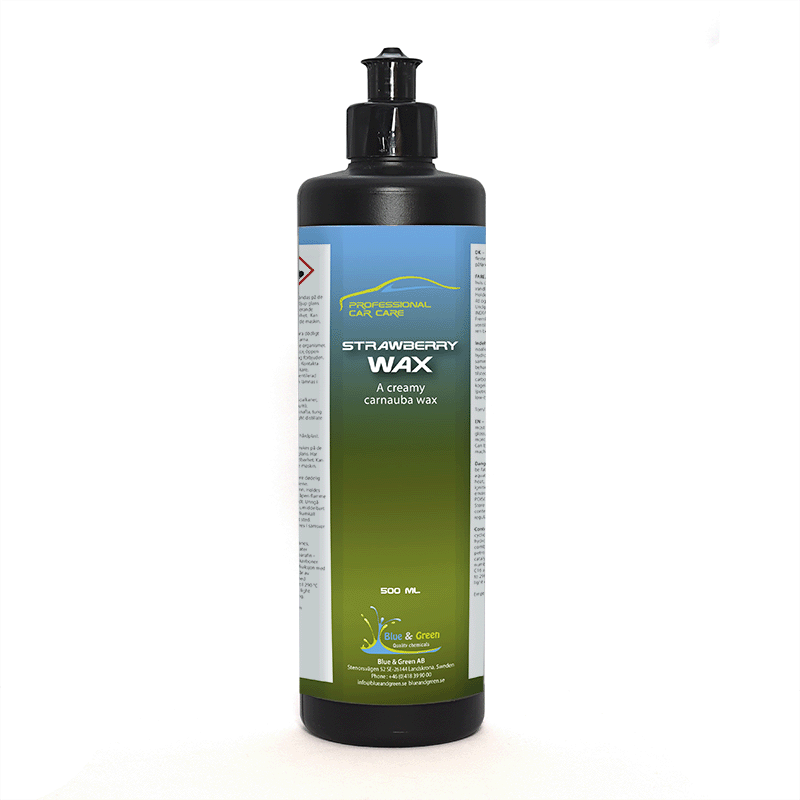 Gi bilen din en eksepsjonell finish med Strawberry Wax – en kremet Carnaubavoks som beskytter lakkoverflaten og fremhever dens naturlige glans. Denne voksblandingen er spesielt utviklet for å gi langvarig beskyttelse og en imponerende dybde i lakken, samtidig som den etterlater en behagelig duft av jordbær. Hvorfor velge Strawberry Wax? Effektiv beskyttelse: Voksen danner en robust barriere mot smuss, vann og andre forurensninger. Lang holdbarhet: Beskytter lakken i opptil 6 måneder. Enkel påføring: Kan påføres for hånd eller med oscillerende maskin – perfekt for både nybegynnere og erfarne bilentusiaster. Tekniske spesifikasjoner: Emballasjestørrelse: 500 ml (produktnr. 055002). Egnet for bruk på de fleste typer lakk. Brukerveiledning: Påfør et tynt lag med en ren applikator. La voksen tørke til den blir matt. Poler forsiktig med en mikrofiberklut for en skinnende finish. Merk: Produktbildet er kun en illustrasjon. Noe avvik kan forekomme.